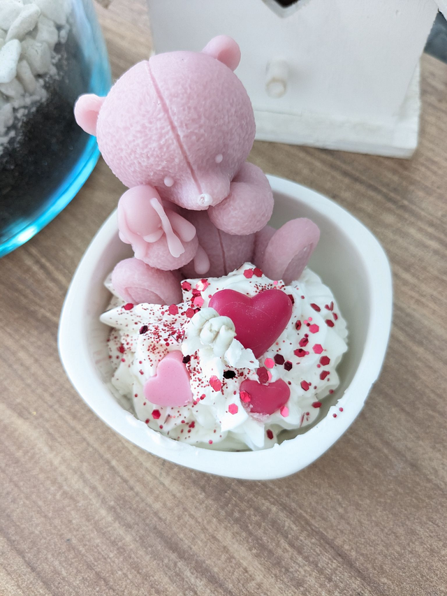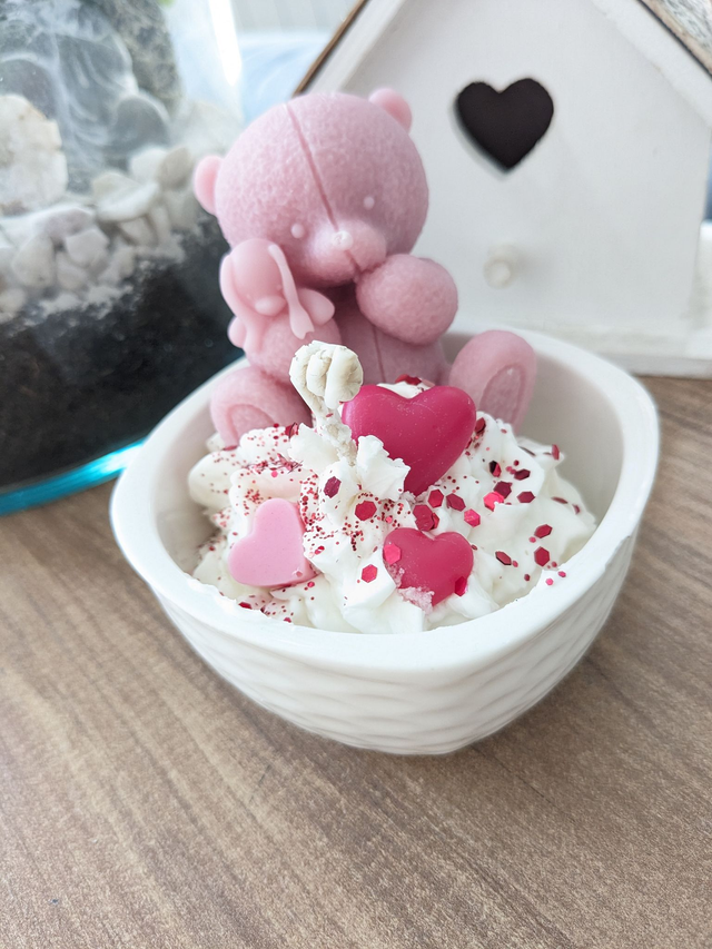 Bougie Ours & LOVE. Cire de soja naturelle et parfum de Grasse. Contenant en céramique.