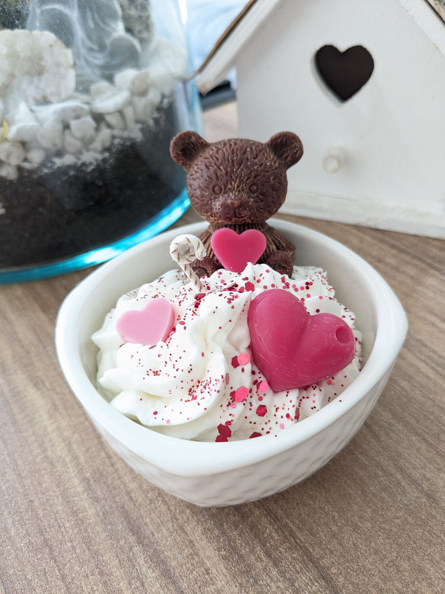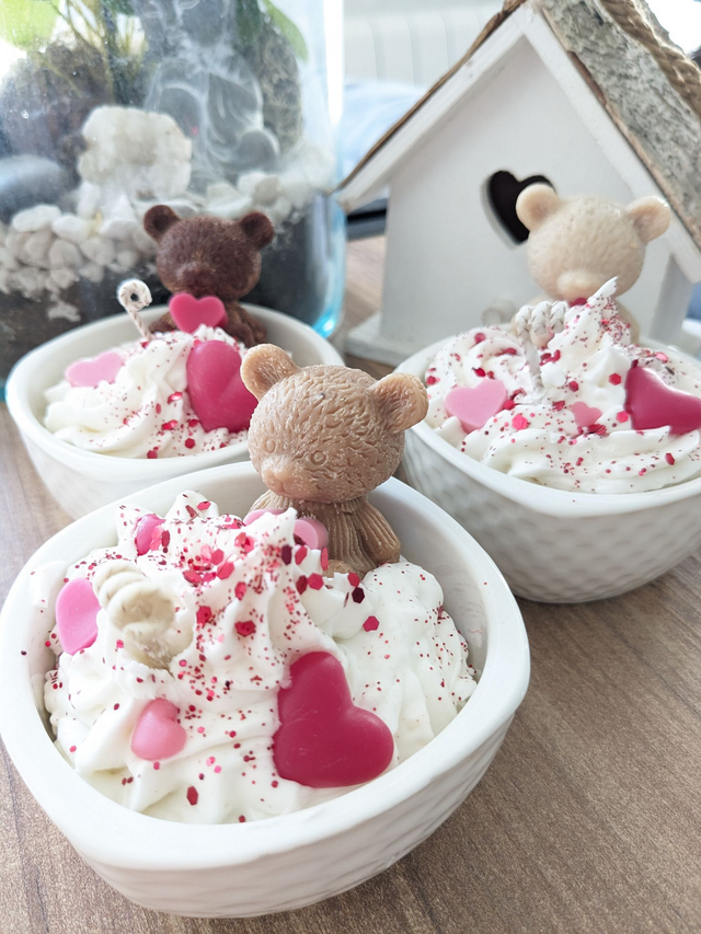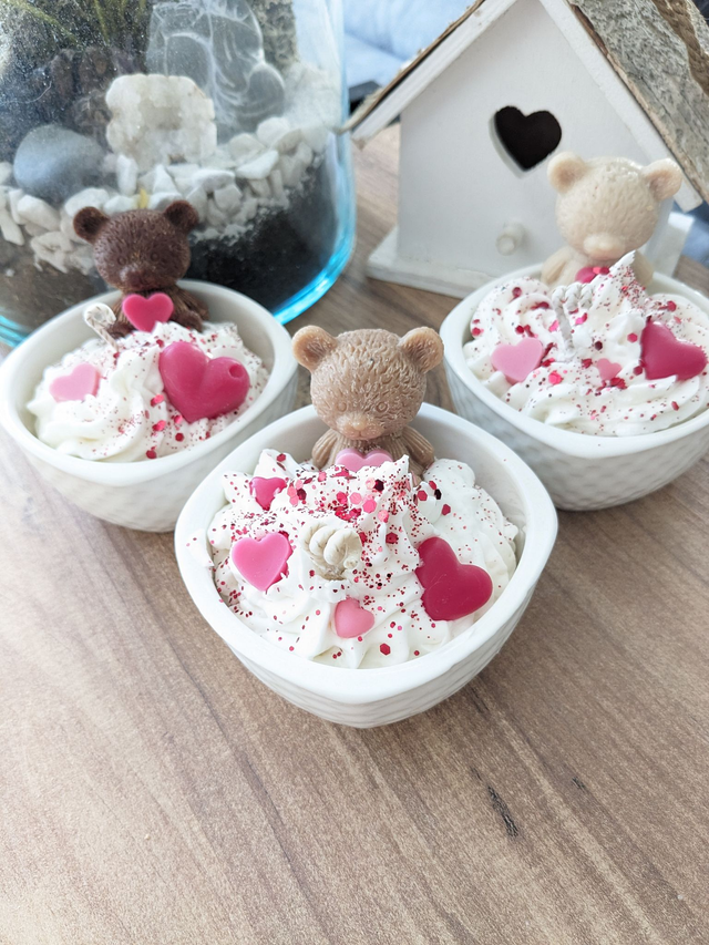 Bougie Ours & LOVE. Cire de soja naturelle et parfum de Grasse. Contenant en céramique.
