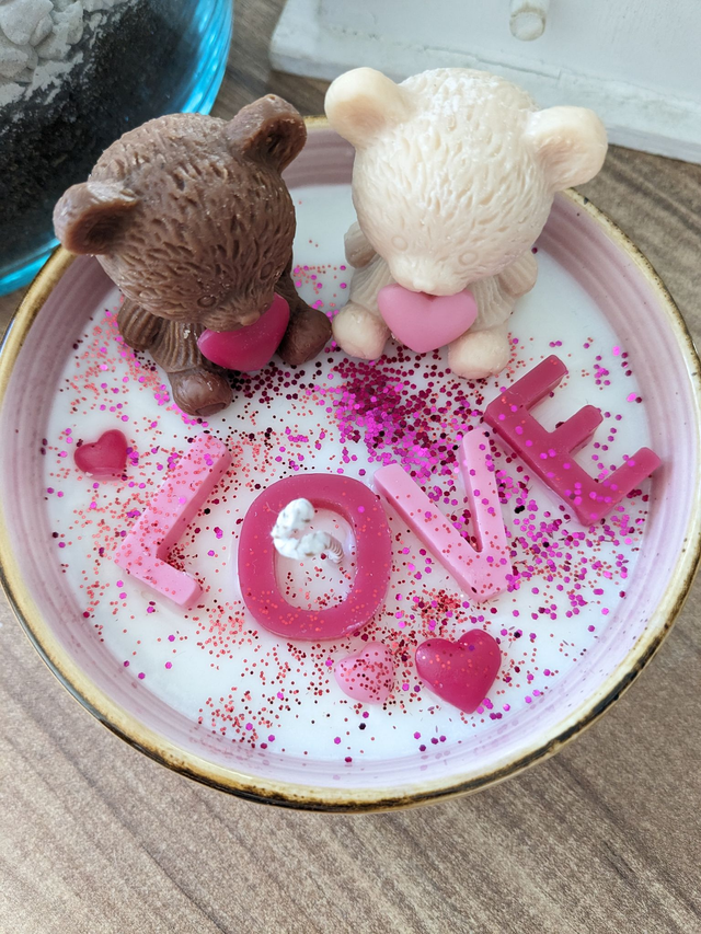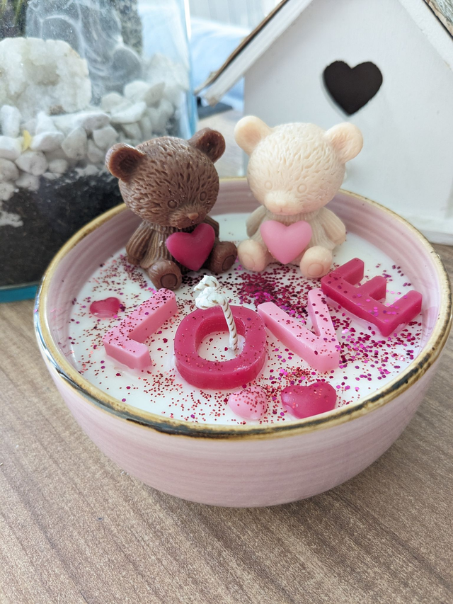 Bougie Ours & LOVE. Cire de soja naturelle et parfum de Grasse. Contenant en céramique.