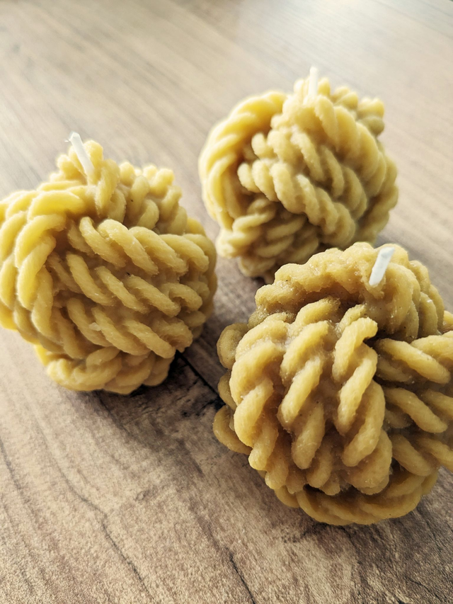 Bougie en forme de pelote à la cire de soja naturelle.
